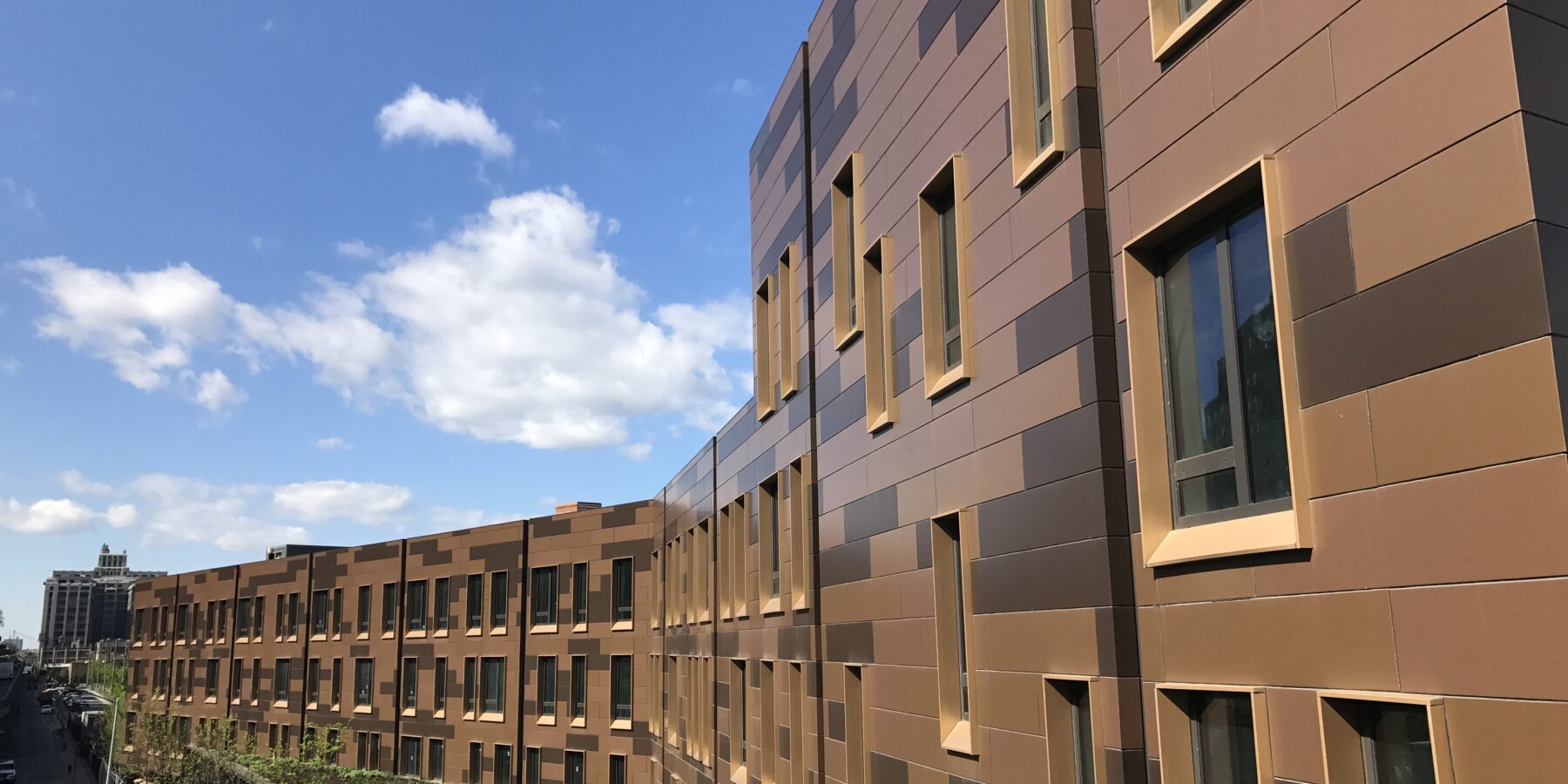 We performed an extensive noise survey, conducted acoustical modeling to determine minimum acoustical performance specifications for the building façades at various elevations, and consulted with the design team and curtain-wall manufacturer on the façade design to satisfy attenuation requirements.