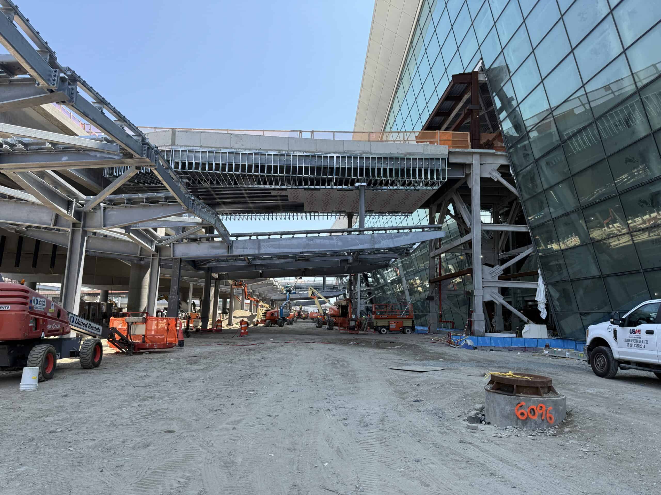 Construction continues to progress on New Terminal One at JFK International Airport. The terminal is scheduled to open its first gates in 2026.