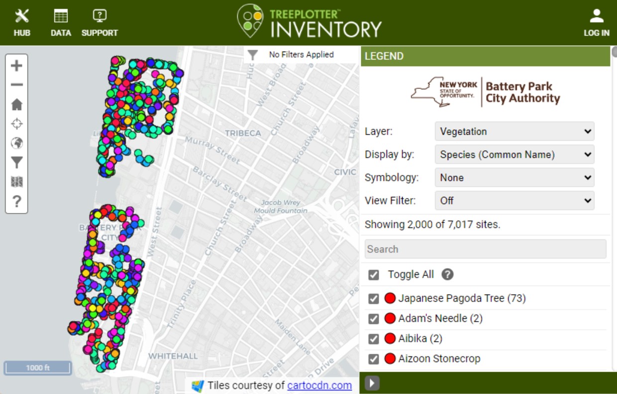 AKRF learned a lot about building a biodiversity program with an integrated tree inventory in maintained urban parks. We anticipate more information on plant characteristics will become available such that the BPCA’s database may be updated periodically, and the analyses rerun to gain a better understanding of the biodiversity, wildlife value, and resiliency of Battery Park City.