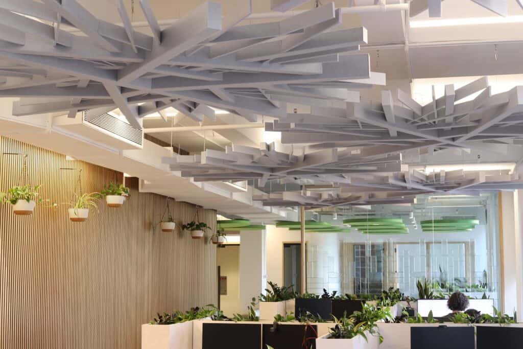 “The acoustical treatments and zoned biophilic soundscaping in each area play a major role in creating that seamless transition as people move from the entryway into the depths of the space,” says Evan. “We didn’t know, however, what the best acoustical tools to support that were. Benjamin really showed us the way.”