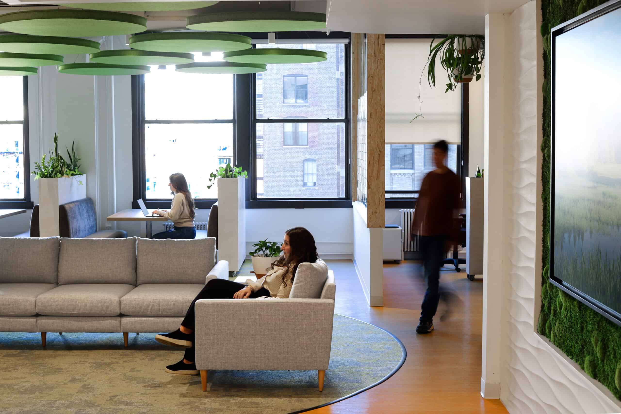 Our baseline standard was a workplace that had the variety of resources a collaborative, diverse team may need for their office days. To raise the bar, we sought to create an equitable space that was both functional and helped us to feel our best and inspired at any moment of the day. We wanted a space that emphasized biophilic design, an optimized acoustical environment including soundscaping, and natural light with an eye toward wellness and performance.