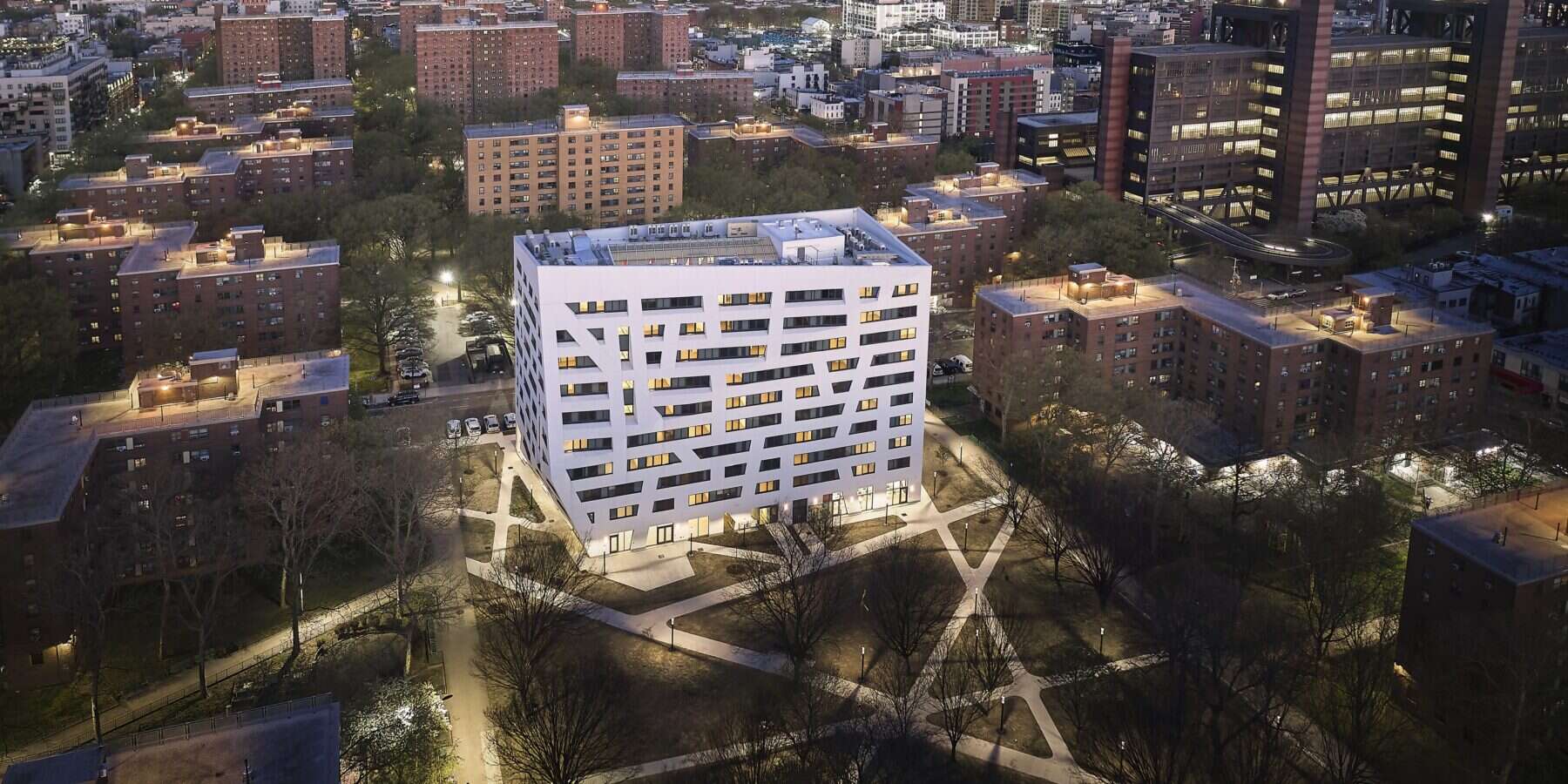 Atrium at Sumner was designed by Studio Libeskind and developed by Urban Builders Collaborative, RiseBoro Community Partnership, and Selfhelp Community Services in collaboration with the New York City Housing Authority, Department of Housing Preservation and Development, and Housing Development Corporation.