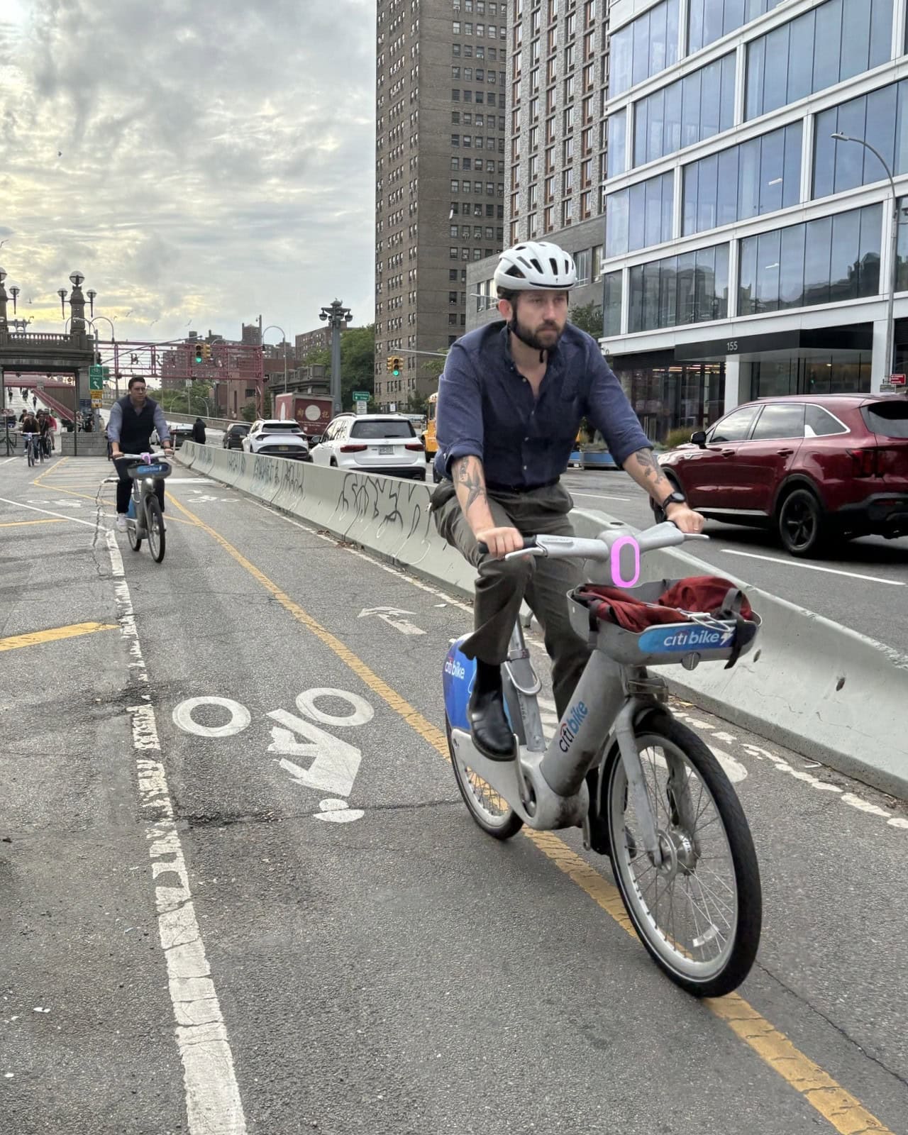 Cyclist on Delancey Street near the Williamsburg Bridge