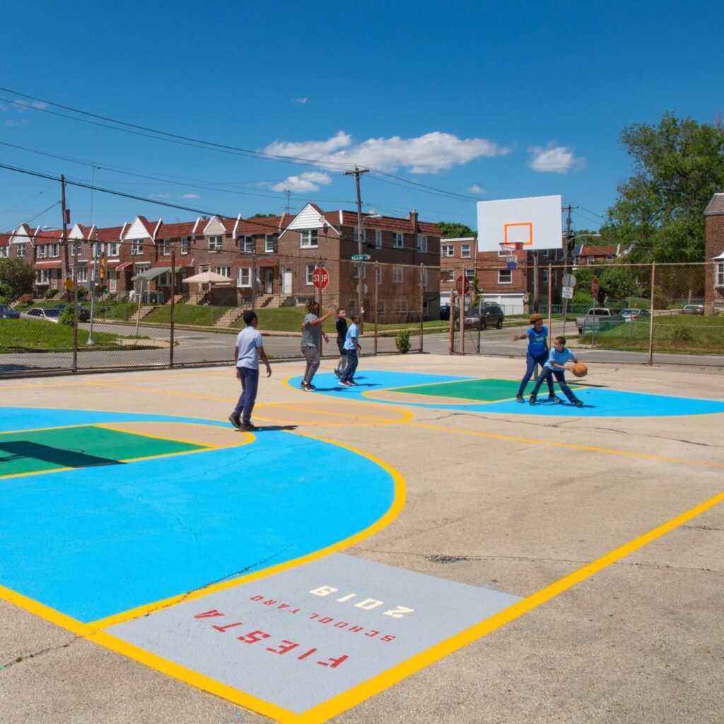 The Fiesta Schoolyards initiative replaces vacant hardscapes around Philadelphia with safe, clean, and dynamic play spaces.